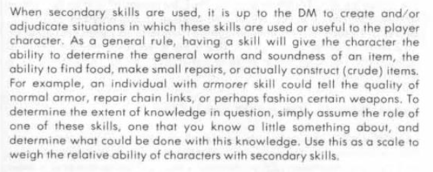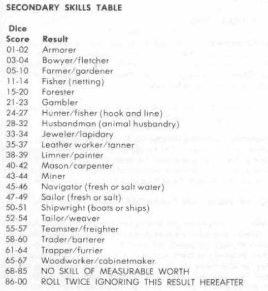 Knowledge Areas are, as I pointed out earlier. are highly reminiscent of the Secondary Skills table from the AD&D 1E DMG